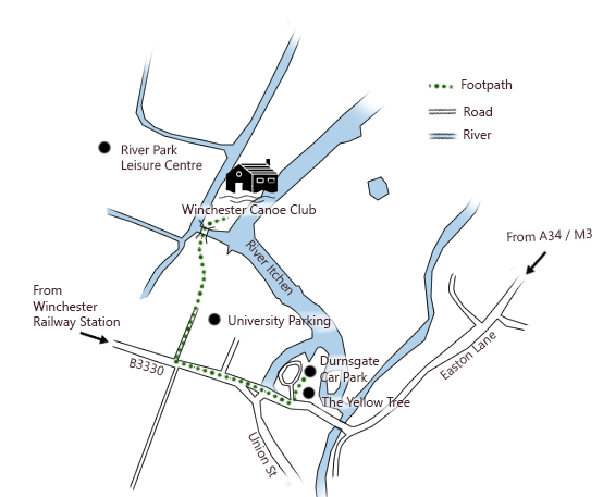 We are located on North Walls Recreation Ground next to the River Itchen in Winchester, near the River Park Leisure Centre (now closed for redevelopment) and Bowls Club.